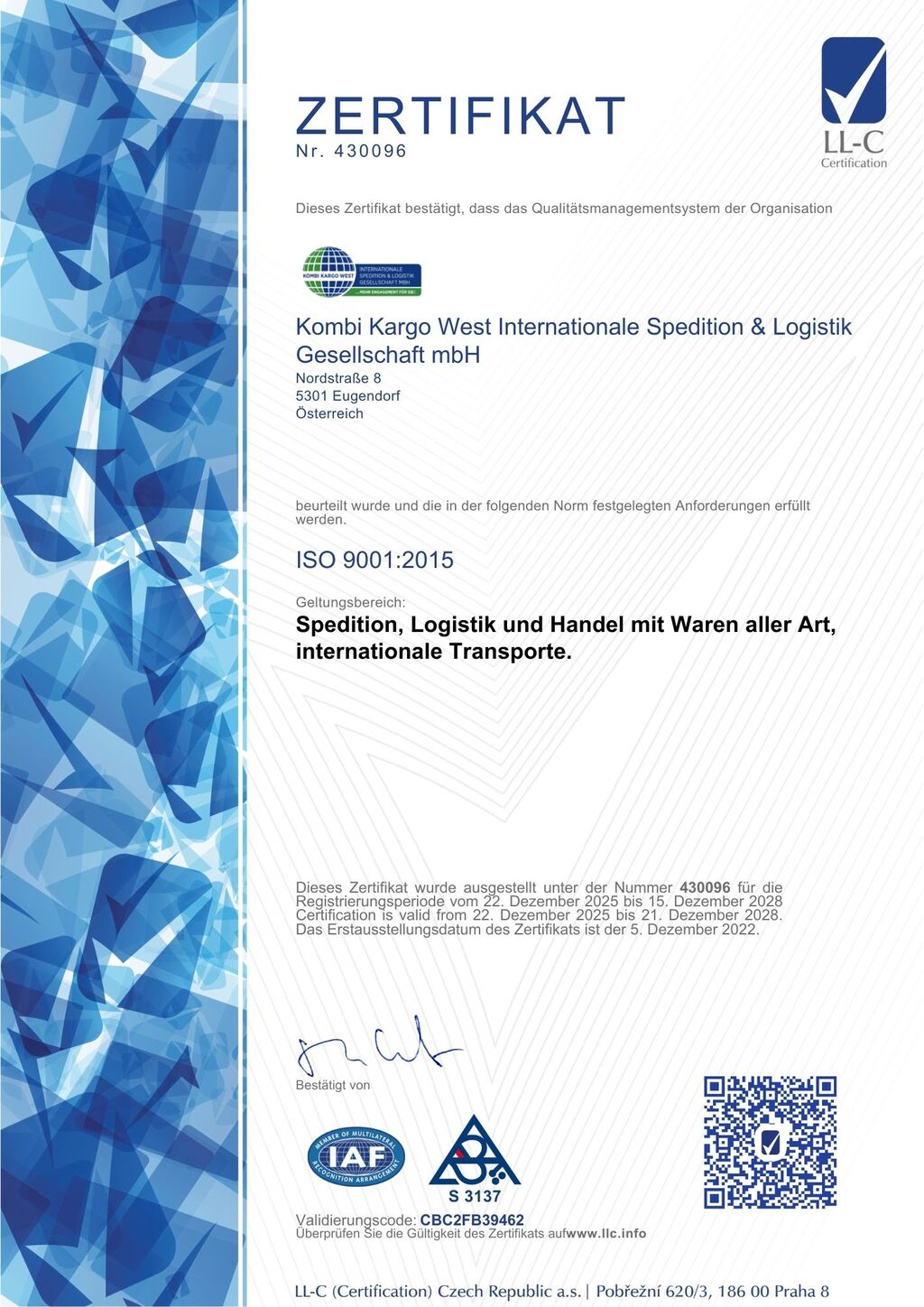 Gründung der Kombi Kargo West Internationale Spedition & Logistik GmbH in Hallwang. Erste Lager- und Kommissionierflächen wurden angemietet.